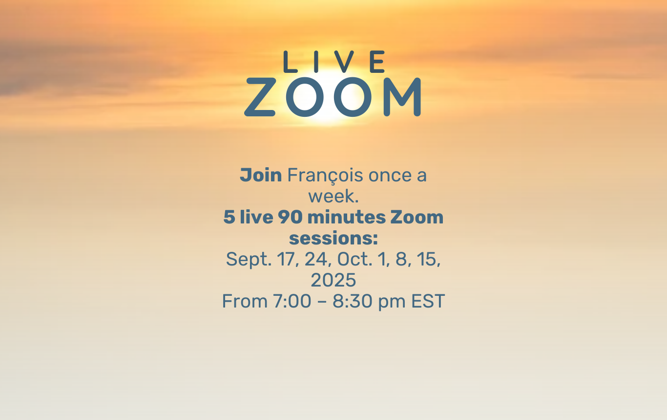 Please note: These live Zoom sessions with François will not include chats, sharing, or questions, and only the host will be visible on video. If you are unable to attend the live Zoom sessions, a recording will be available the following day for 72 hours.